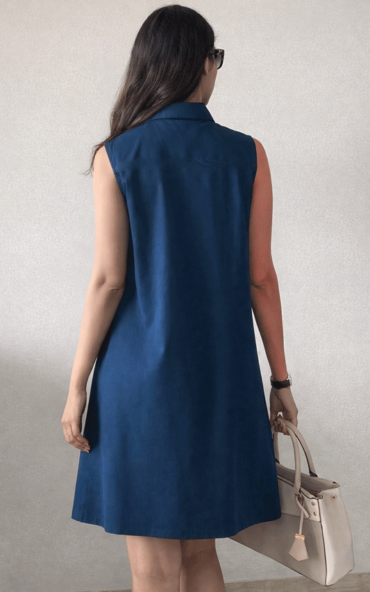 Blue thread embroidered dress