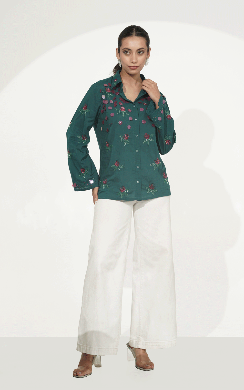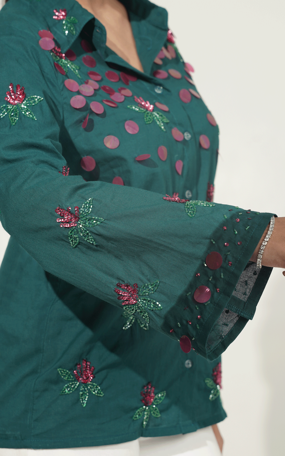 The beauty of this shirt lies in its intricate details. Each sequin is thoughtfully placed to catch the light at every angle, creating a subtle, sophisticated shimmer rather than an overwhelming glow. This isn't just a garment; it’s a showcase of meticulous craftsmanship. The hand-worked sequins are reinforced with a soft interior lining, ensuring that you get all the sparkle without any of the scratchiness typically associated with embellished wear